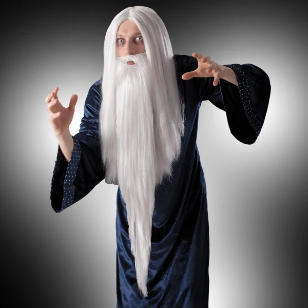 Parrucca per travestimento da mago con barba per realizzare un costume di carnevale per completare il vostro personaggio! La parrucca e la barba sono accessori realizzati per rendere ancora piu’ suggestivo il vostro per spettacolo teatrale.