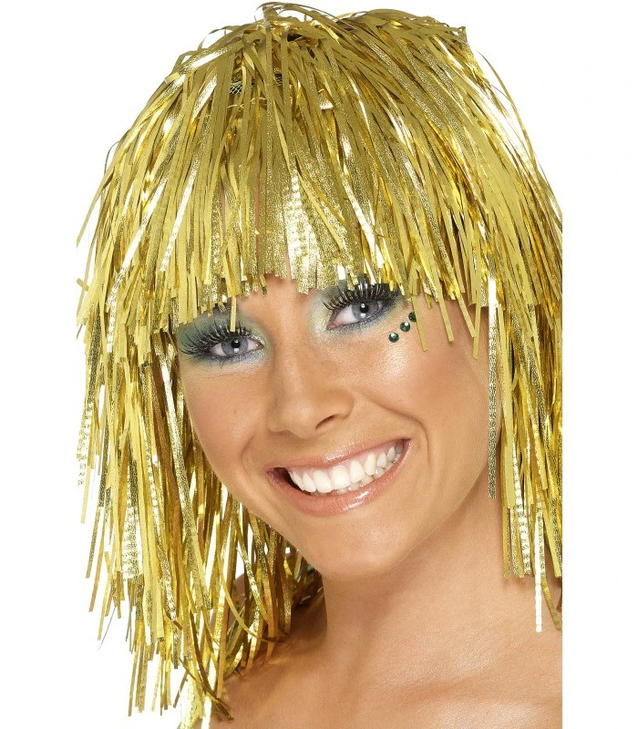 Parrucca oro metallizzata adulti , ottima per serate apperiscenti e party in discoteca o solo per essere notati a Capodanno , naturalmente ad un prezzo incredibilmente basso su www.pelatelli.com