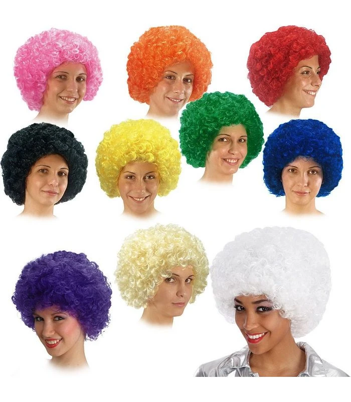 Parrucca ricciolina colori assortiti. Adatta per feste a tema, recite, feste di Carnevale ed Halloween.
