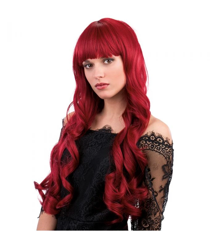 Parrucca mossa lunga con frangia rossa. Adatta per feste in maschera, feste di Carnevale e Halloween. Un bellissimo accessorio che non vi farà passere inosservato/a.