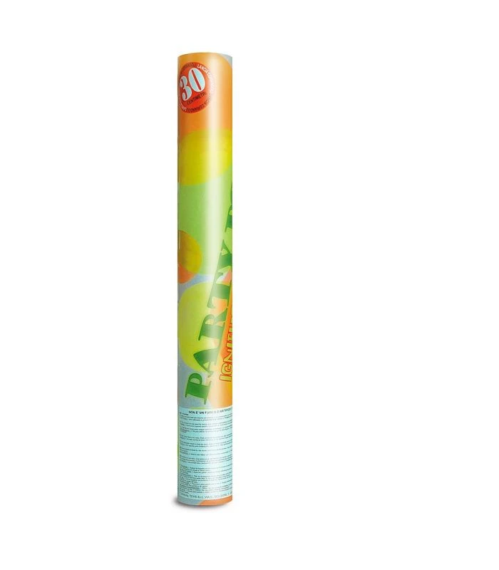 Tubo popper economico spara coriandoli e stelle filanti. Meccanismo ad aria compressa, alto cm.30, spara fino a 7-8 metri.