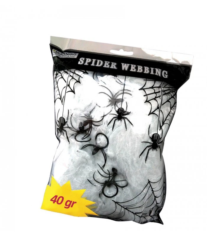 RAGNATELA BIANCA DA 40 GR. IN BUSTA ADATTA PER ALLESTIMENTI A TEMA HALLOWEEN E HORROR ..