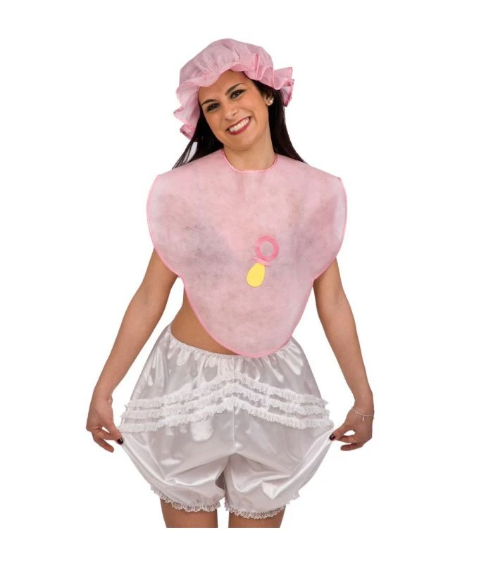 Set da neonato con bavaglino grande e cuffia in tessuto. Adatto per scherzi e travestimenti. Ideale per Carnevale.