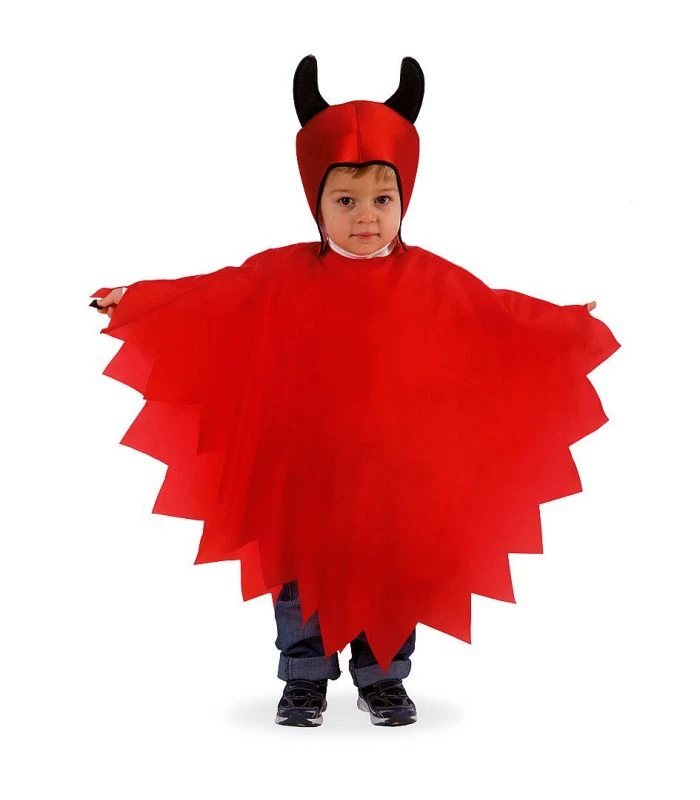 Set da diavoletto bambino con mantellino e cappuccio in taffettas con corna. Ideale per feste in maschera e Halloween. Per un grazioso e carinissimo Diavoletto.