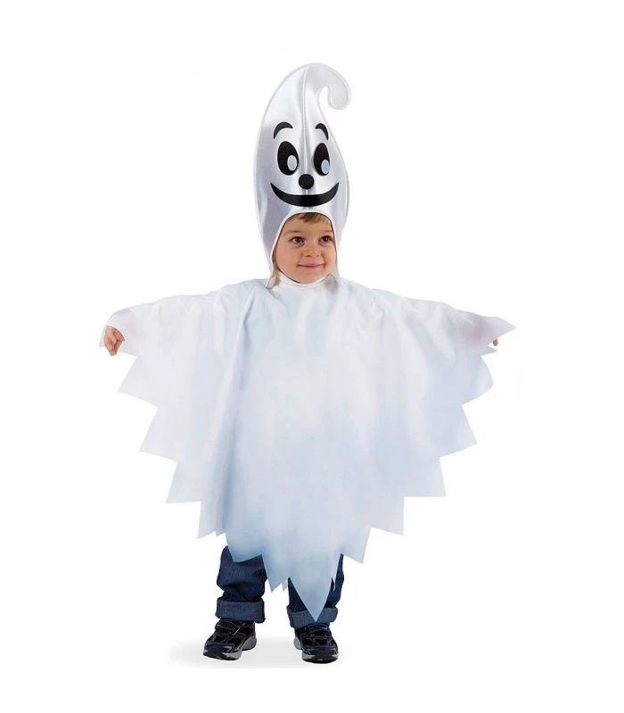 Set fantasmino da bambino con mantellino in taffettas e cappuccio. Ideale per feste in maschera e Halloween. Per un carinissimo Casper.