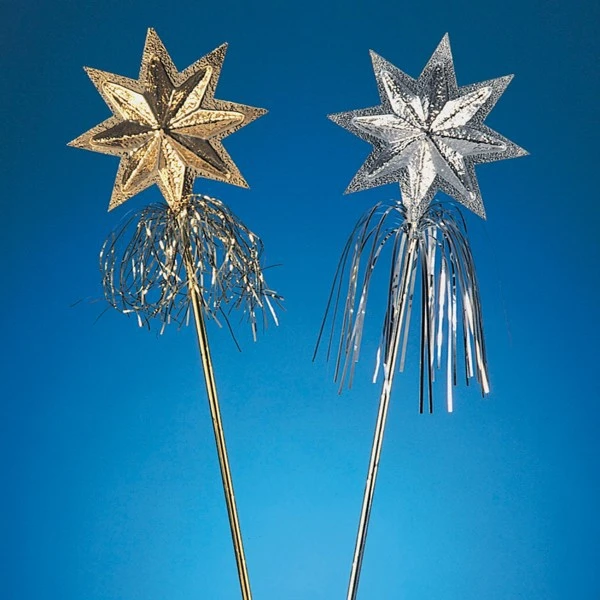Stella della fata in oro, un accessorio per vestire i panni della fatina in una festa di carnevale. Adatto per bambine che vogliano travestirsi da fate.