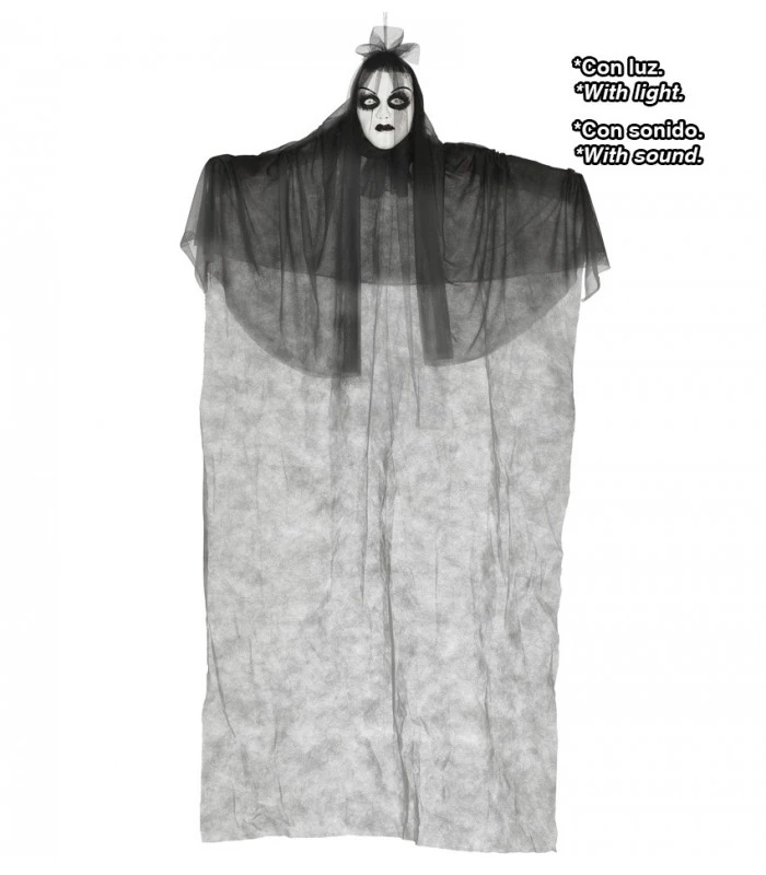 VAMPIRESSA DA APPENDERE CON LUCE SUONI E MOVIMENTO LUNGHEZZA 170 CM . QUESTO ARTICOLO DA APPENDERE LUNGO 170 CM è PERFETTO COME ALLESTIMENTO DI HALLOWEEN E NON SOLO .. UTILIZZATO ANCHE PER DECORARE SALE A TEMA HORROR , ARTICOLO CON LUCI E SUONO PER DARE UN EFFETTO PIU’ REALISTICO E SPAVENTOSO